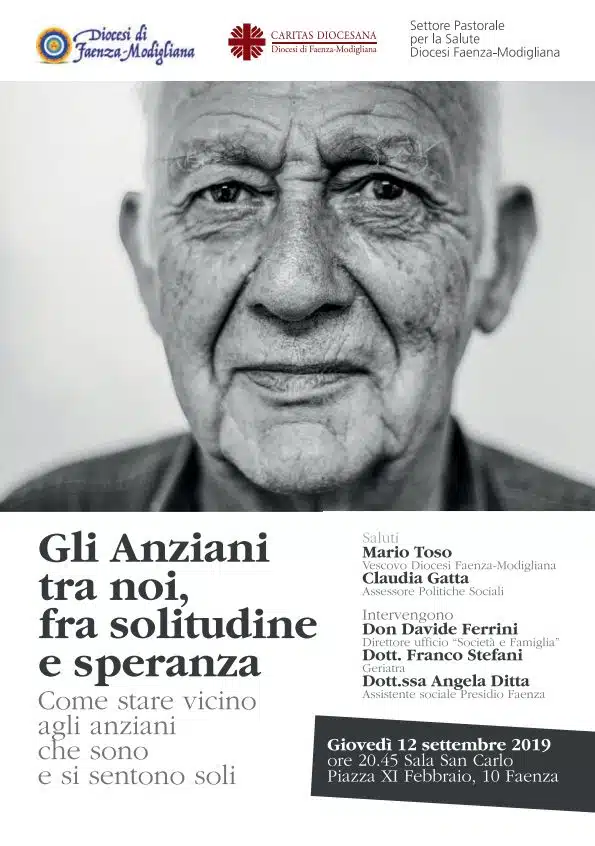 Caritas diocesana e Pastorale della salute promuovono l’incontro pubblico “Gli anziani tra noi, tra solitudine e speranza“, per capire “come stare vicino agli anziani che sono e si sentono soli“. Intervengono don Davide Ferrini (ufficio diocesano società e famiglia), dott. Franco Stefani (geriatra), dott.ssa Angela Ditta (assistente sociale).