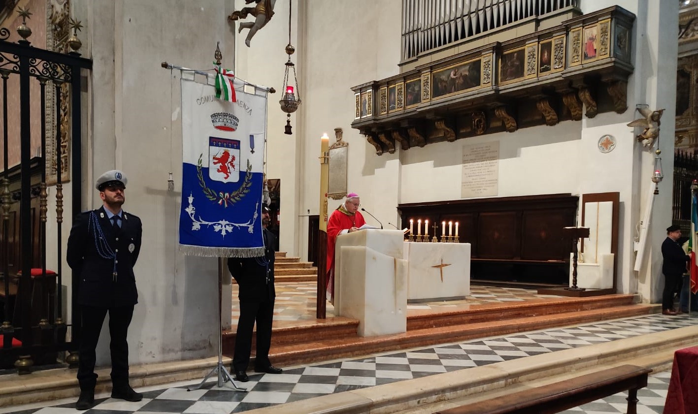 Nella festa di san Marco siamo qui a celebrare l’Anniversario della Liberazione dell’Italia alla fine del secondo sanguinoso conflitto mondiale. Il prezioso bene della libertà, così faticosamente conquistata, non va solo commemorato o difeso, per cui rifiutiamo, per la struttura stessa delle nostre persone, ogni autoritarismo totalizzante. Va soprattutto coltivato in tutti i suoi aspetti di relazione con la verità del bene, nell’accoglienza reciproca e nella fraternità, nel colloquio con Dio. Libertà non significa soltanto rispetto dell’altro: è anche prendersi cura di lui perché sia liberato dalle catene delle molteplici schiavitù e gli sia consentito di fiorire nella sua pienezza umana, civile e religiosa. La libertà per cui siamo chiamati a prodigarci non è soltanto spezzare le proprie catene, ma anche vivere in modo da rispettare e accrescere la libertà altrui.[1] Di qui scaturisce il nostro impegno di lavorare alla costruzione di una società libera, di una pace universale. Di qui deriva il compito di essere custodi del creato, bene collettivo, in cui tutto è connesso.